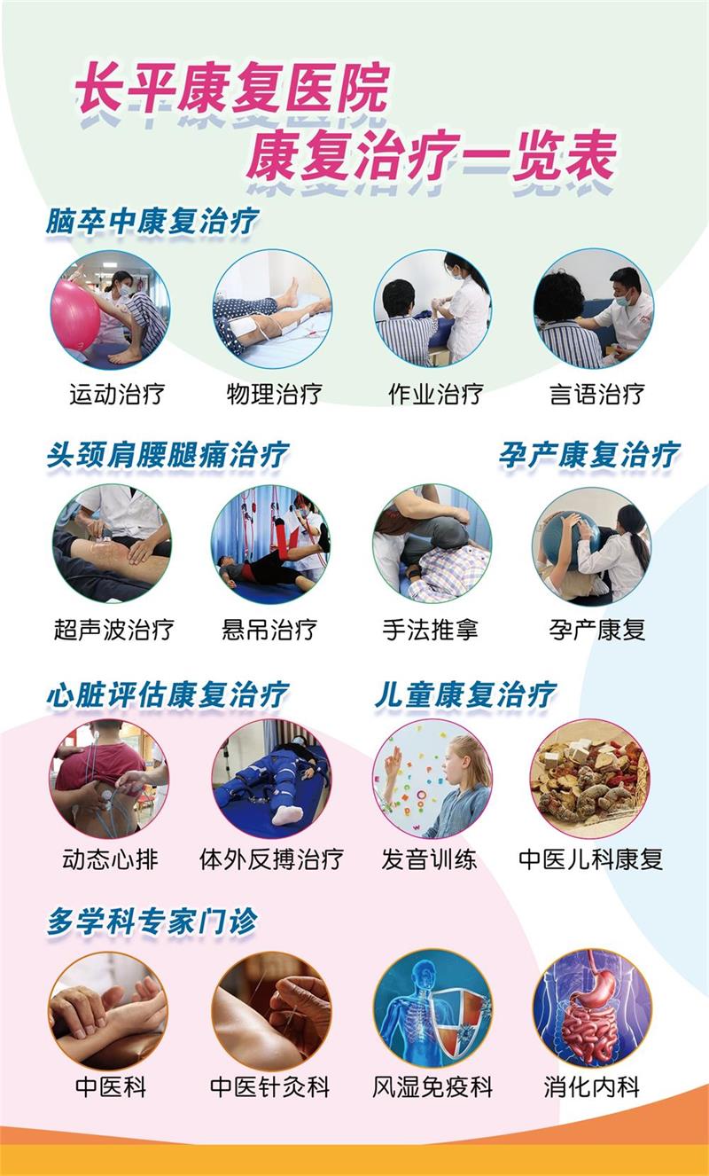 目前开设门诊部、住院部、治疗部;诊疗科目:全科、康复医学科、脑卒中专科、颈肩腰腿痛专科、神经内科(住院部)、综合内科(住院部)、中医科(住院部)、神经康复科(住院部)、中医针灸科、心脏康复科、儿童康复科、风湿免疫科、内分泌专科、消化内科、医学检验/医学影像/磁共振/X线诊断/超声诊断/心电诊断等。